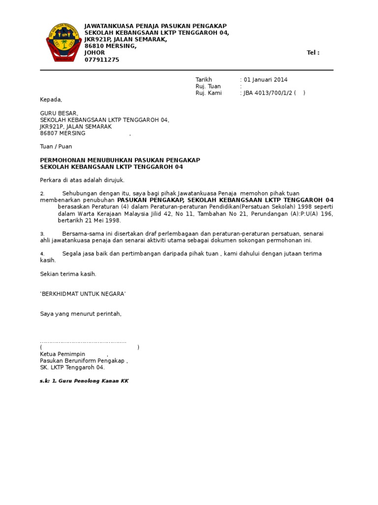 Contoh Surat Pendaftaran Pengakap Sekolah Kepada Pengakap Malaysia