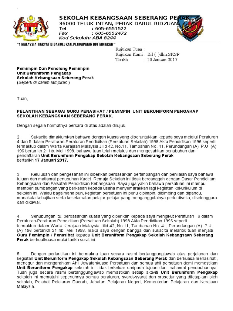 1 6 Surat Pelantikan Unit Beruniform Pengakap Sksp Pdf